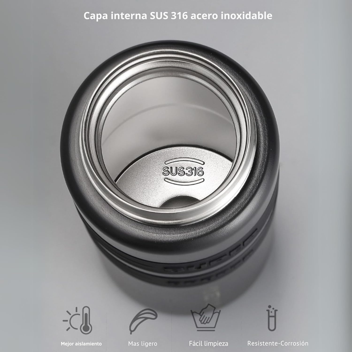 - Materiales de Alta Calidad y Durabilidad Acero inoxidable 316 en el interior y 304 en el exterior. Recubrimiento en polvo ecológico, resistente a rayones y golpes. Libre de BPA y apta para uso alimentario.