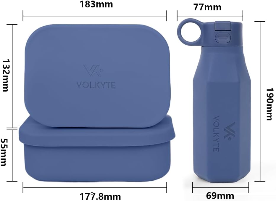 Haz que cada día sea más saludable, organizado y divertido con nuestro kit de silicona reutilizable para niños. Muy útil para la escuela, excursiones, salidas de viaje, etc. Set completo (botella + lonchera): Incluye también una fiambrera de 800 ml con 3 compartimentos, perfecta para separar snacks, frutas, proteínas o sándwiches. Todo viene presentado dentro de una caja. La botella es de 350 ml. Ambos son válidos para el microondas Fabricados en silicona 100% de grado alimenticio, ambos productos son libres de BPA, seguros, resistentes y totalmente reutilizables. Aptos para el lavavajillas y el microondas. Permiten almacenar comida o bebidas en el refrigerador.